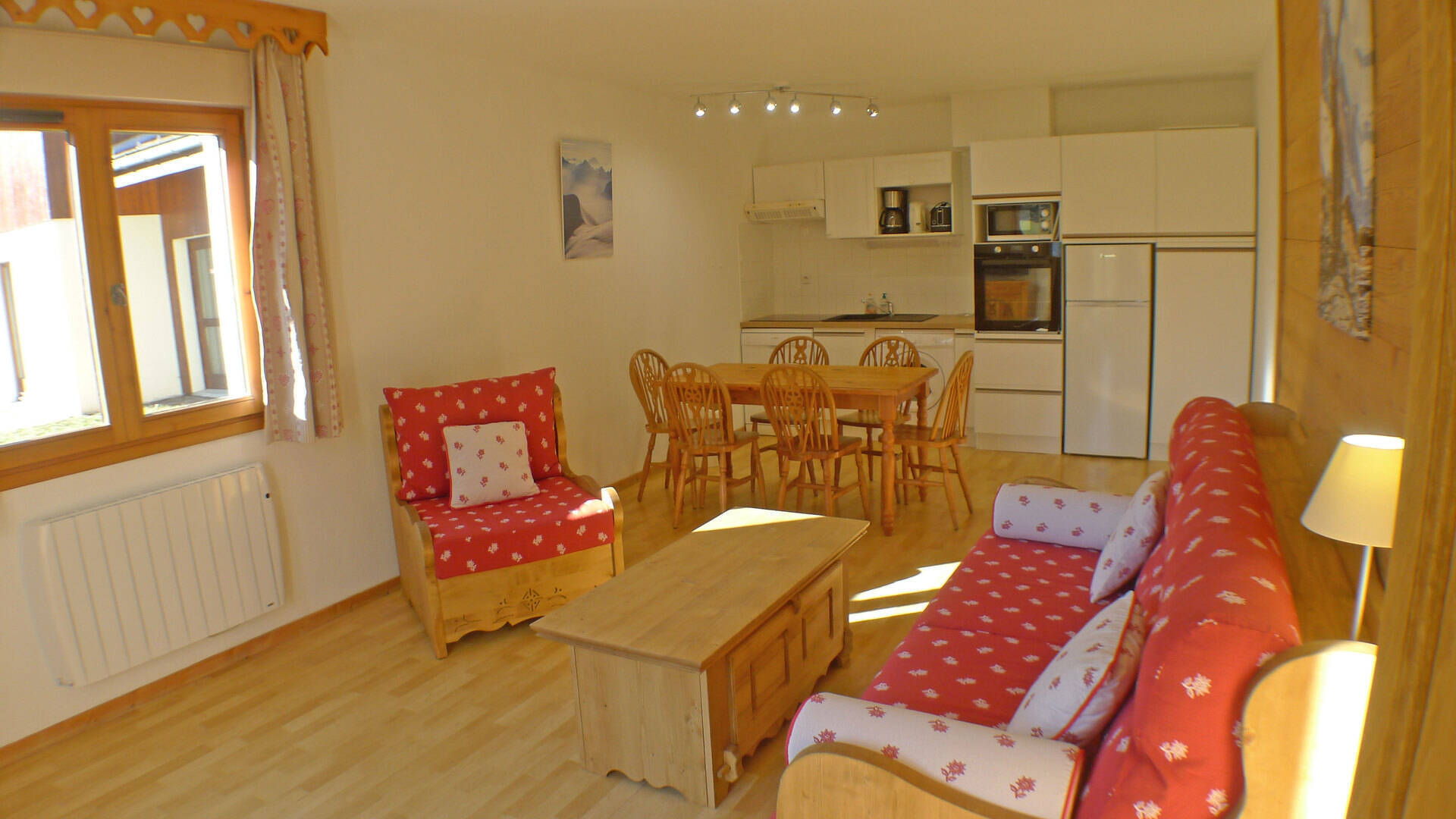 Discover this 63m² 3-room apartment, for 6 people, on the 2nd floor with elevator. This T3 is located in a residence in the center of the authentic and picturesque village of Samoëns, close to shops, restaurants and activities. Easy access to the ski slopes thanks to the free shuttle that passes in front of the residence.